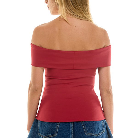 Blusa vino hombro descubiertos con twist en pecho