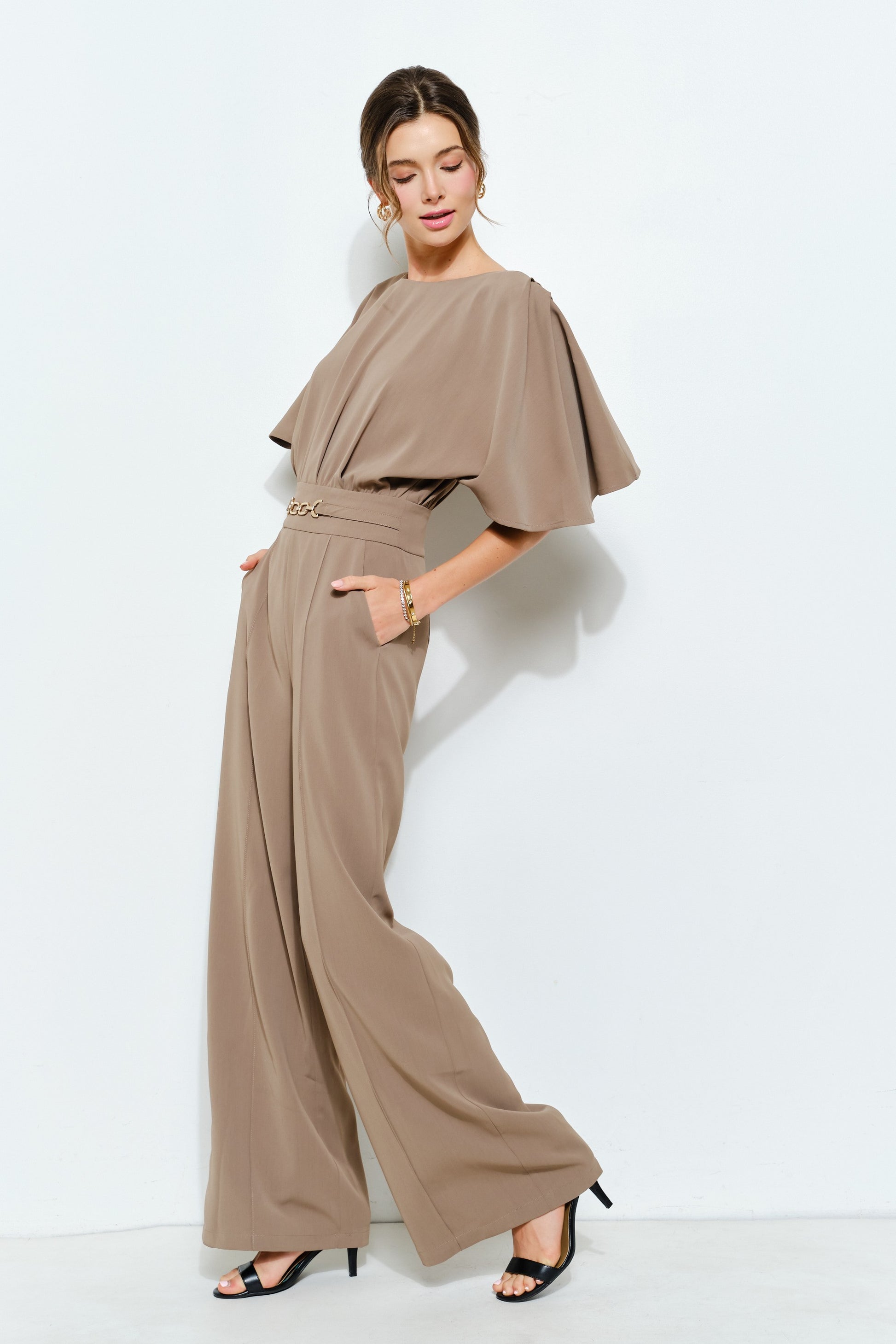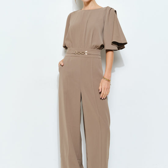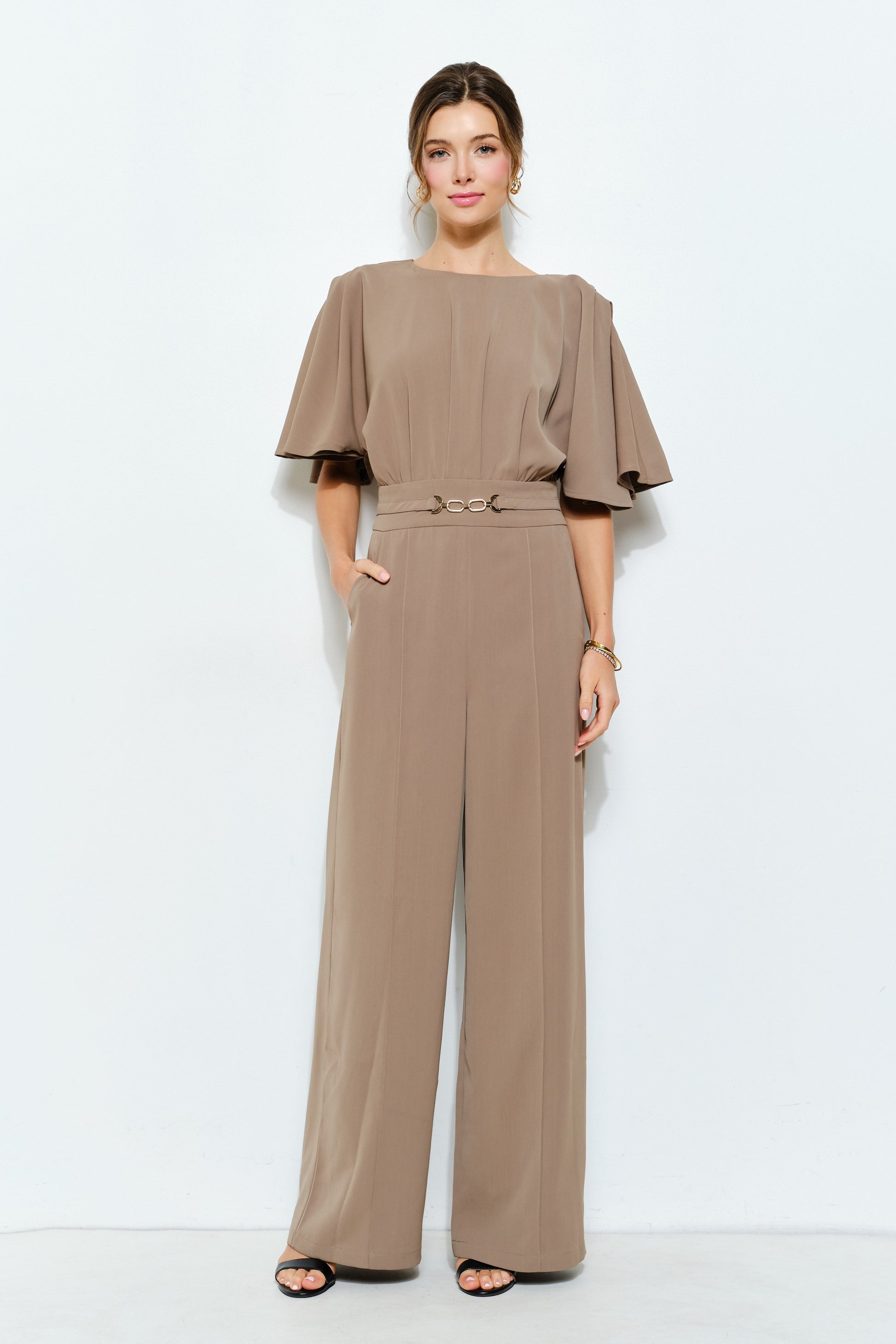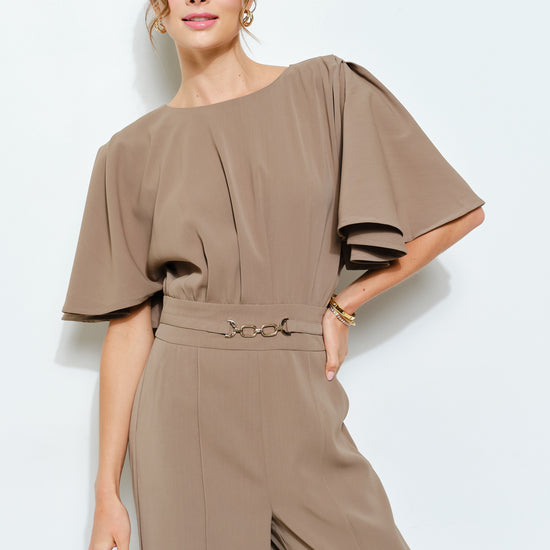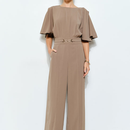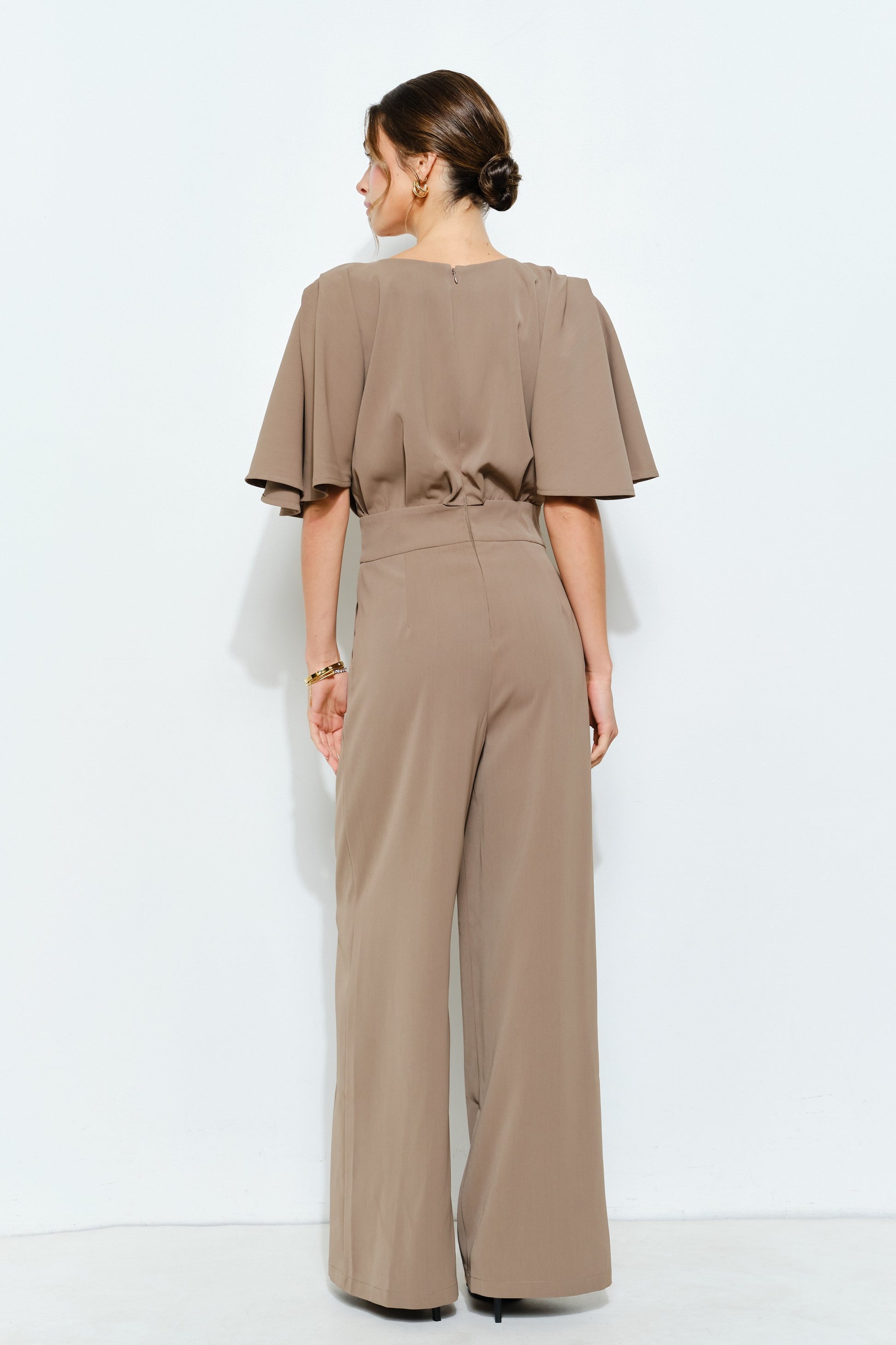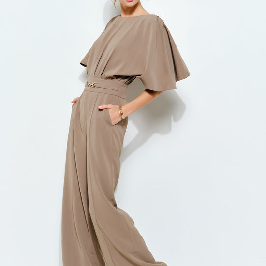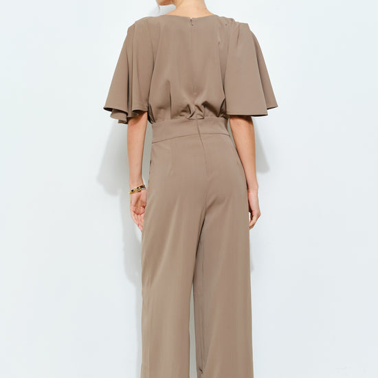Jumpsuit Elegante de Pierna Ancha con Manga Capa – Taupe