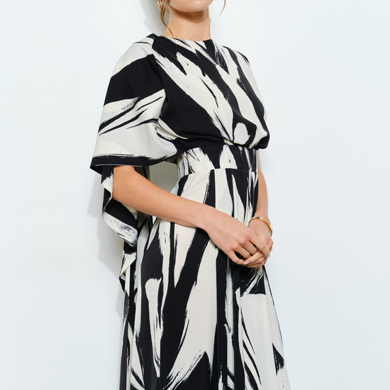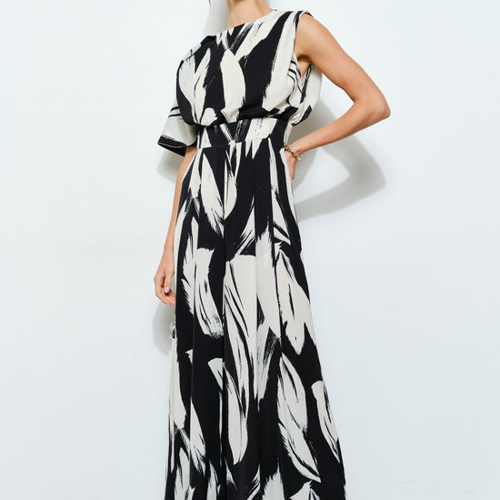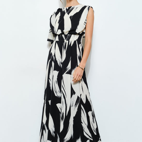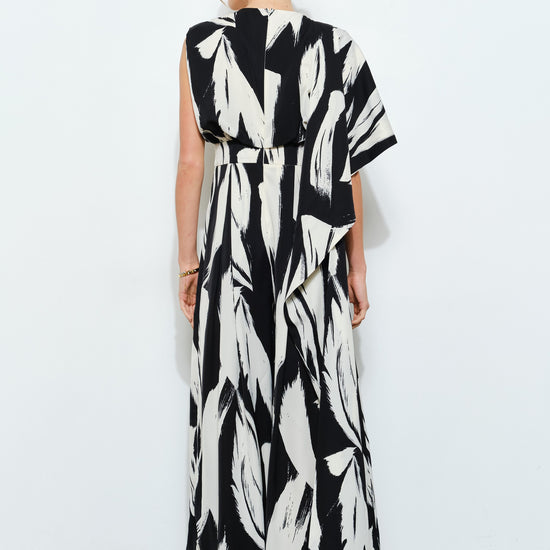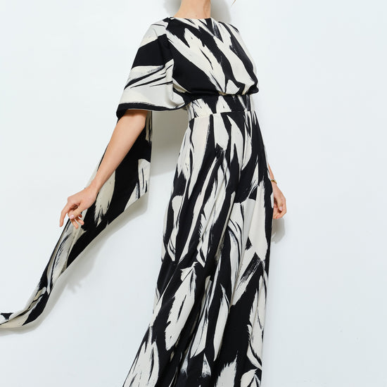 Jumpsuit sin mangas estampado abstracto con cuello de bufanda y drapeado