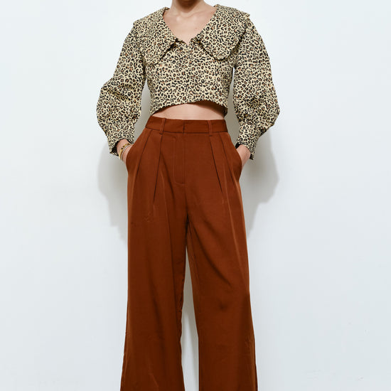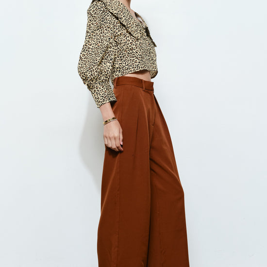 Pantalones anchos con cintura alta y pliegues delanteros