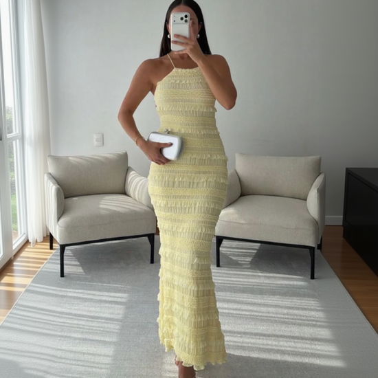 Un diseño que destaca por su textura y color suave que ilumina tu piel. Solo agrégale tacones y accesorios minimalistas… y lista ✨